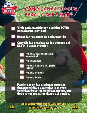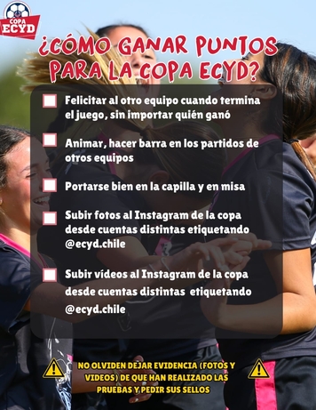 El premio principal de la jornada será la Copa Espíritu ECyD que se la llevará el equipo que más puntos acumule, en una serie de actividades formativas, recreativas, y espirituales.